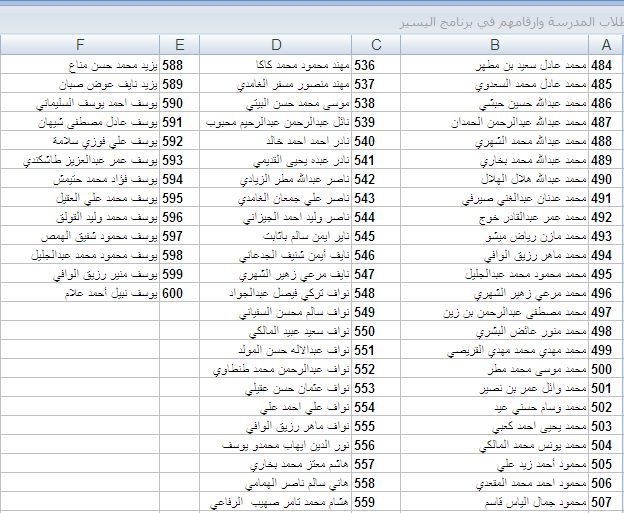 عزيزي الطالب نظراً لكثرة اعداد الطلاب وحتى نتمكن من خدمتك نرجو ان تاخذ رقمك من خلال هذه القائمة الرقم الموجود بجوار اسمك وسوف تحدد ارقام اعارة لكل يوم من رقم ...... الى رقم ................. والحضور في يوم وجود رقمك من ضمن هذه المجموعة كما نرجو تجنب السلوكيات الخاطئة كالتواجد بجوار الباب طول وقت الفسحة او الجري والكلام داخل المكتبة